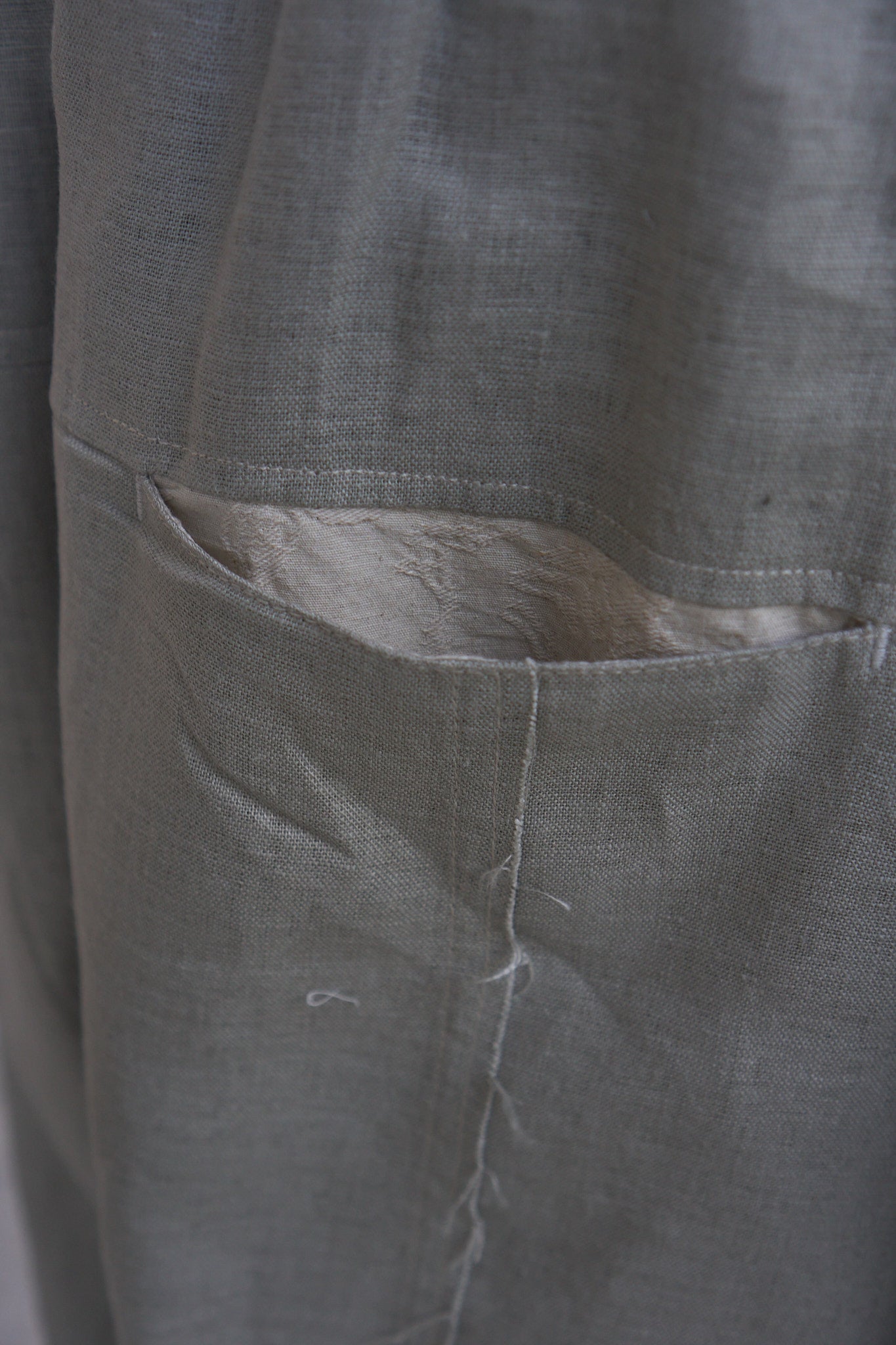 Sarouel type button-fly drawstring shorts with raw-edge detailing throughout, cut from a 100% linen fabric. Darts are placed throughout the hems and outseams to provide a balloon silhouette, while a crotch gusset gives added comfort and durability. The pockets and extended strings are cut from a contrasting cotton/linen/rayon blend jacquard fabric giving a subtle two-toned look to the piece. Finished with brass buttons.