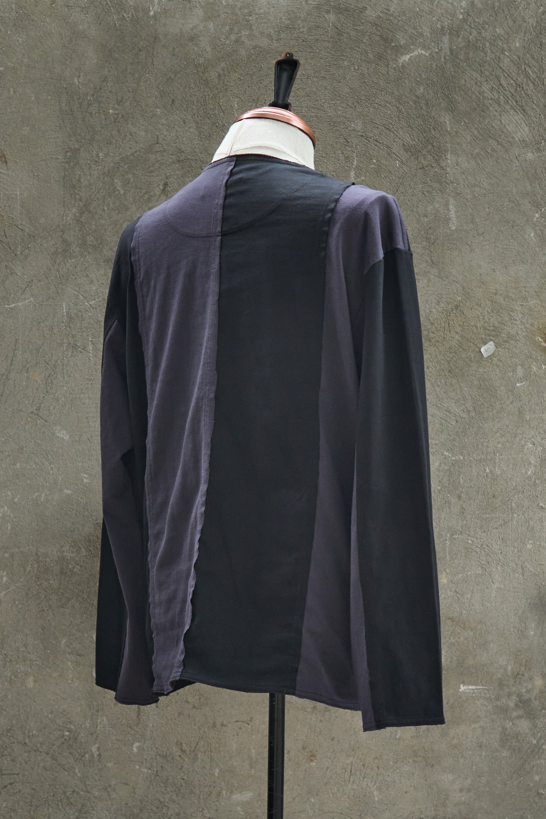 Loose fit light jacket made from 100% midweight cotton jersey strips. The construction of the jacket makes use of raw-edge seams all throughout, while the interior cotton taping provides structure to the hems. Finished with two front patch pockets and brass buttons sourced from Japan.
