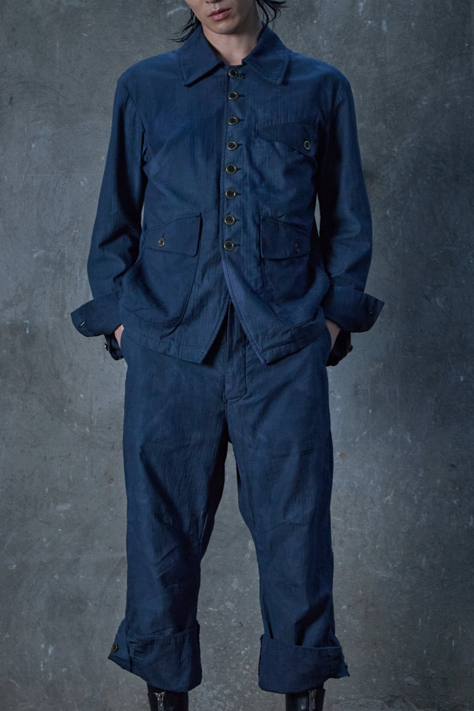 The Overdyed Work Jacket is our modern take on the classic French workwear style. It’s made from pure cotton herringbone fabric, which has undergone our in-house overdye process to achieve a unique, irregular coloration. Storage includes two waist patch pockets with side entries, a chest flap pocket, and an interior seam pocket. Metal buttons, reinforced with backing, are used on the plackets and cuffs. Finished with a pointed collar, a single back vent, and a full bias-bound seam interior.